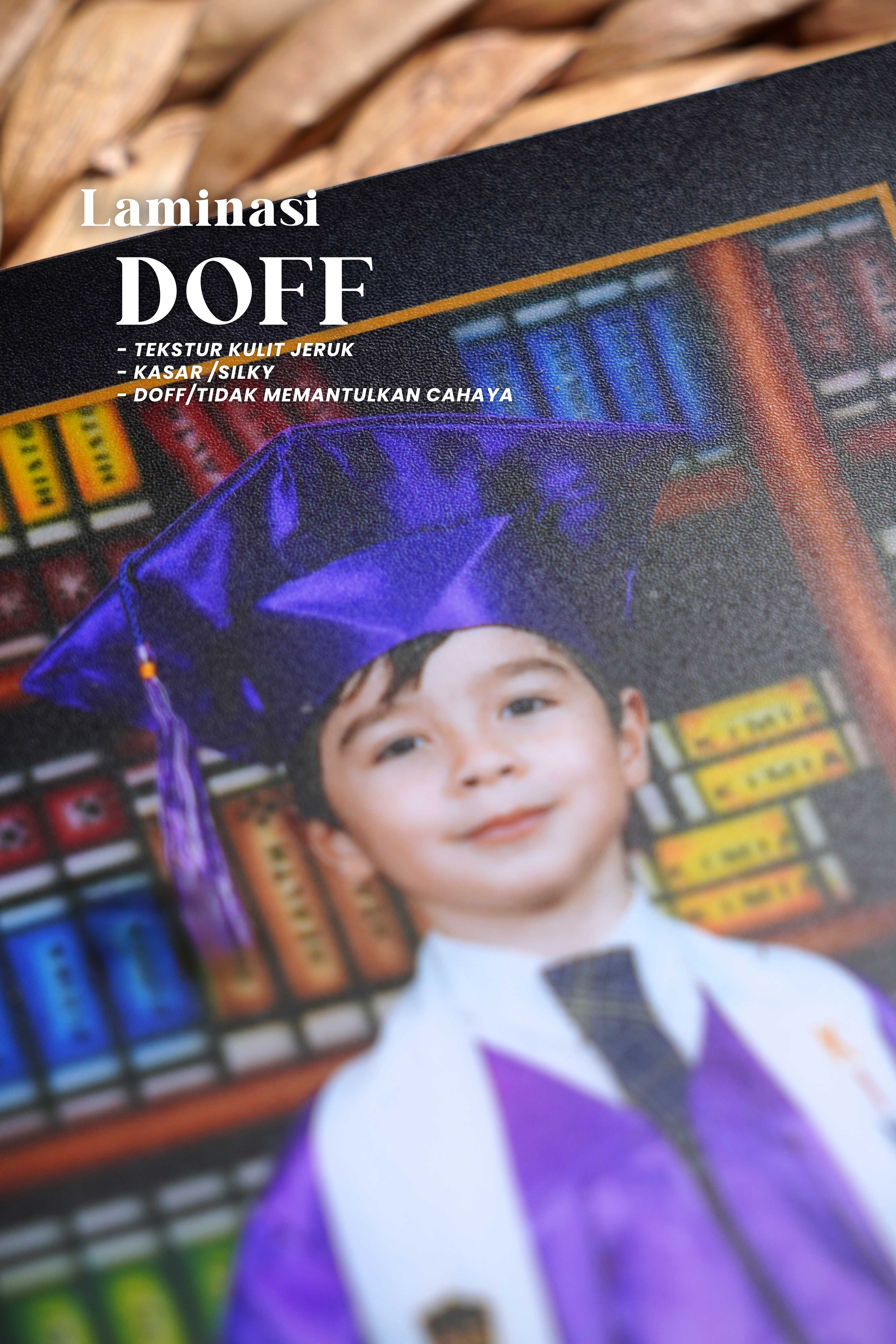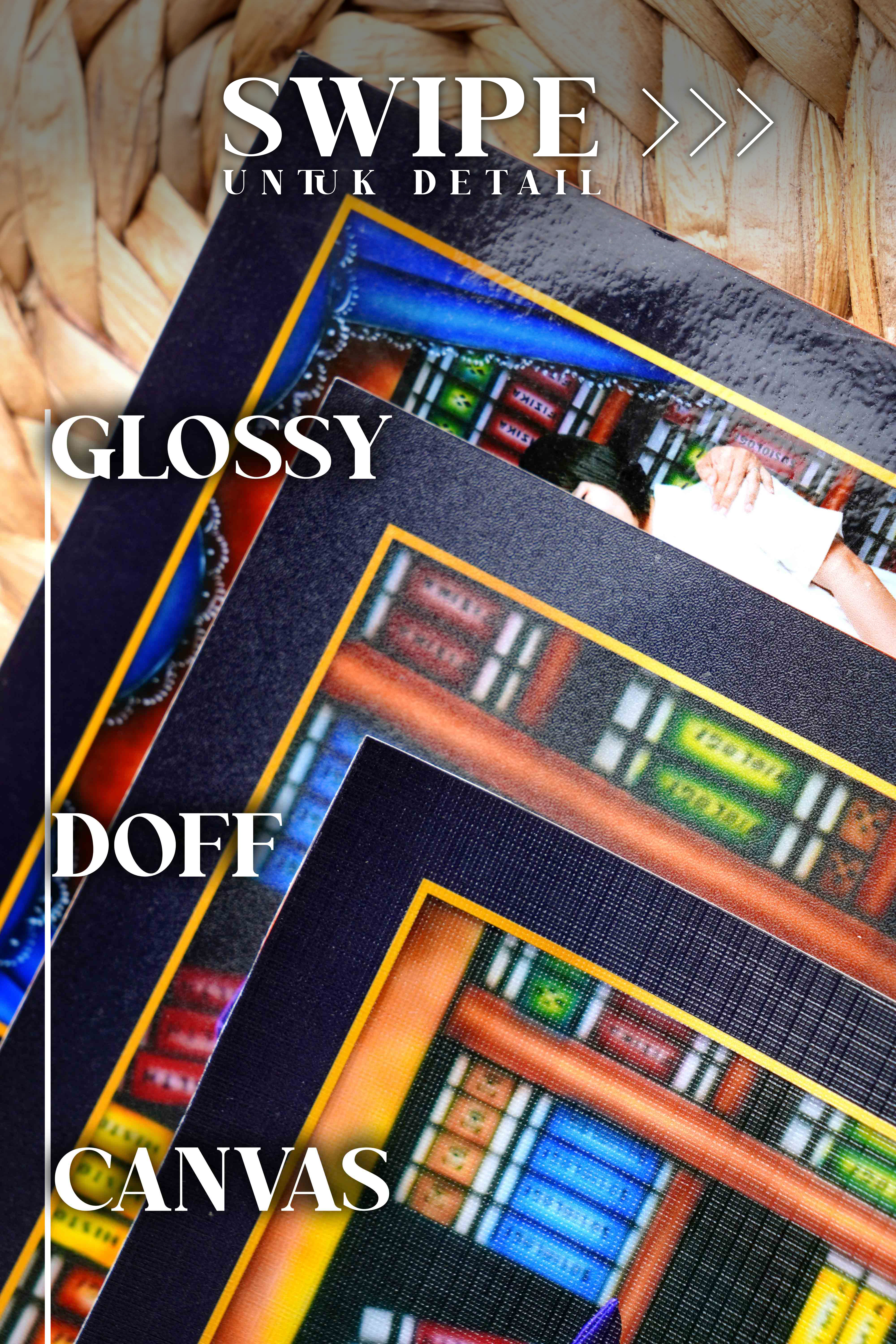 Foto dicetak menggunakan mesin khusus cetak Foto lalu dilapisi dengan laminasi, tersedia laminasi Canvas/Doff/Glossy sehingga daya tahan foto lebih awet & Waterproof terhadap suhu ruangan. Salah satu kelebihan lainnya foto bisa langsung dibersihkan menggunakan lap basah jika kotor atau berdebu tanpa khawatir foto akan luntur atau berubah warna, jika foto ingin di pasang menggunakan Bingkai maka foto bisa lansung dipasang tanpa harus menggunakan kaca sehingga foto terlihat lebih jelas dan tajam di banding dengan menggunakan kaca.. Swipe foto di bawah untuk melihat beberapa sample laminasi